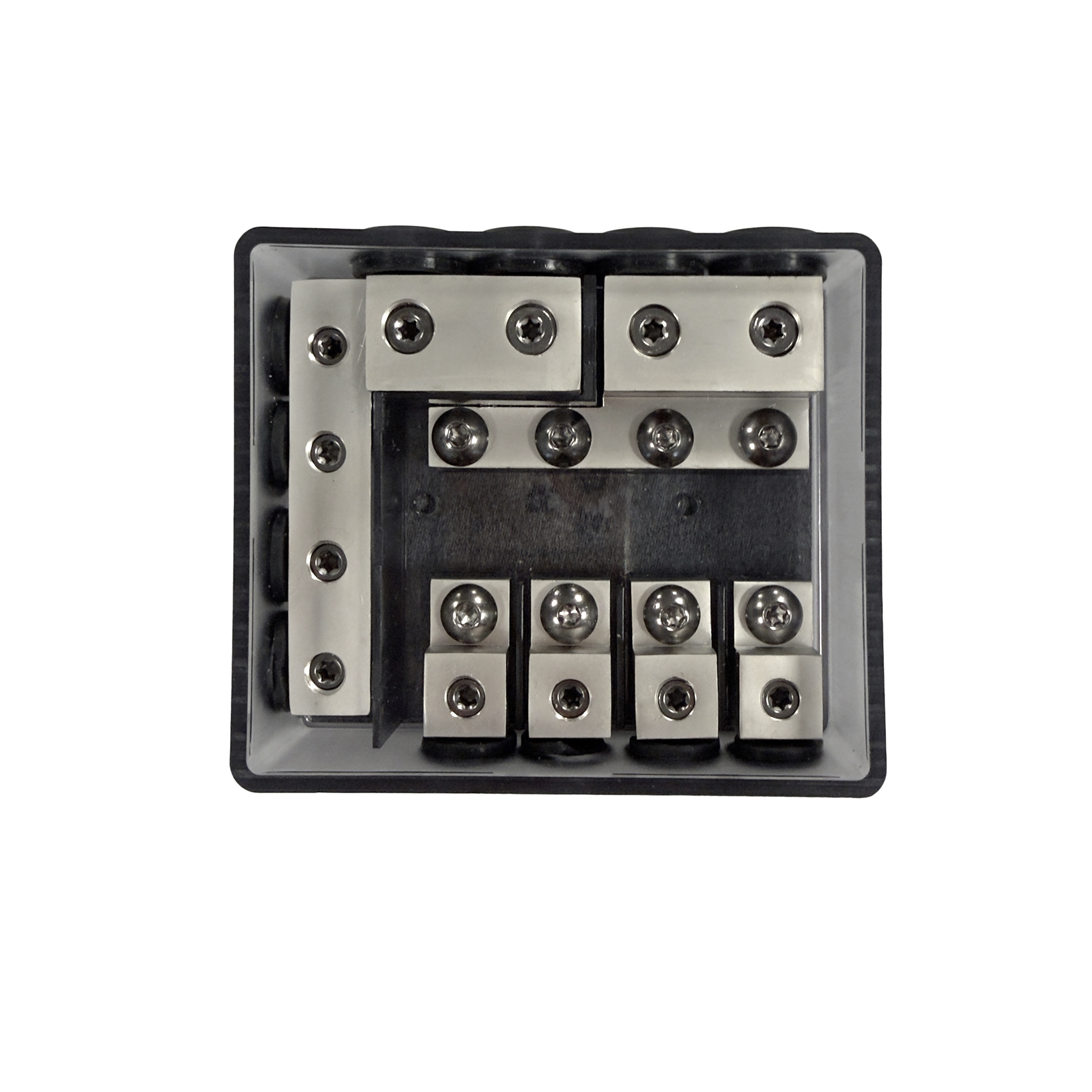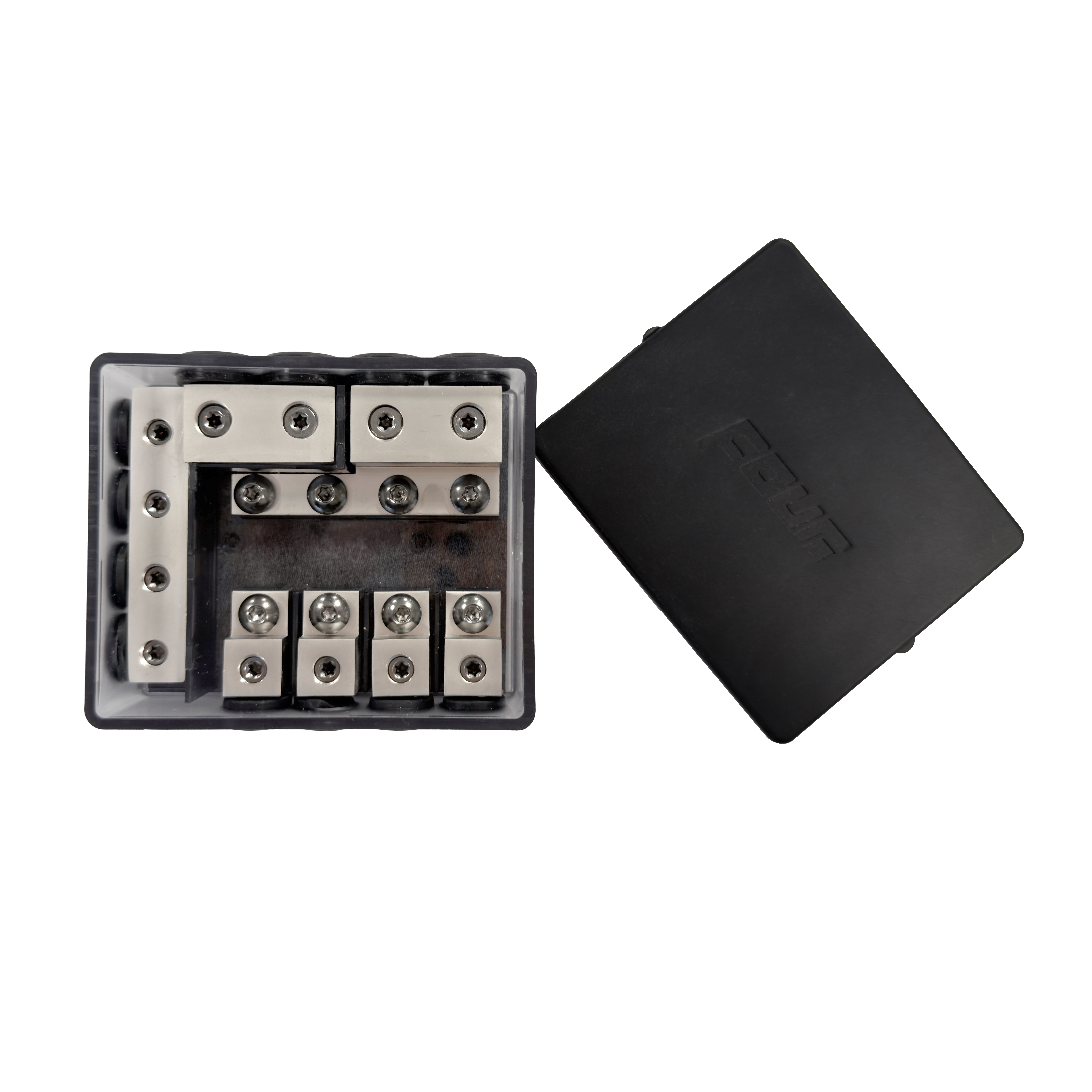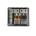 Laadukas roiskevesitiivis mini-ANL sulakepesä. Sisällä 4kpl paikkoja mini ANL-sulakkeille. Tässä tuotteessa on samassa sekä virtapuolen jakoblokki että maapuolen jakoblokki.