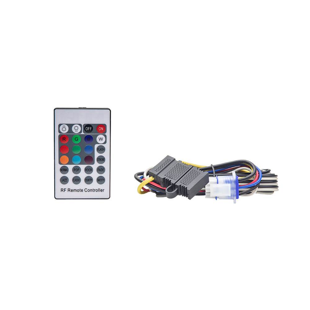 Kauko-ohjattavat RGB LED-valot ritilässä, sekä kotelon takaosassa.