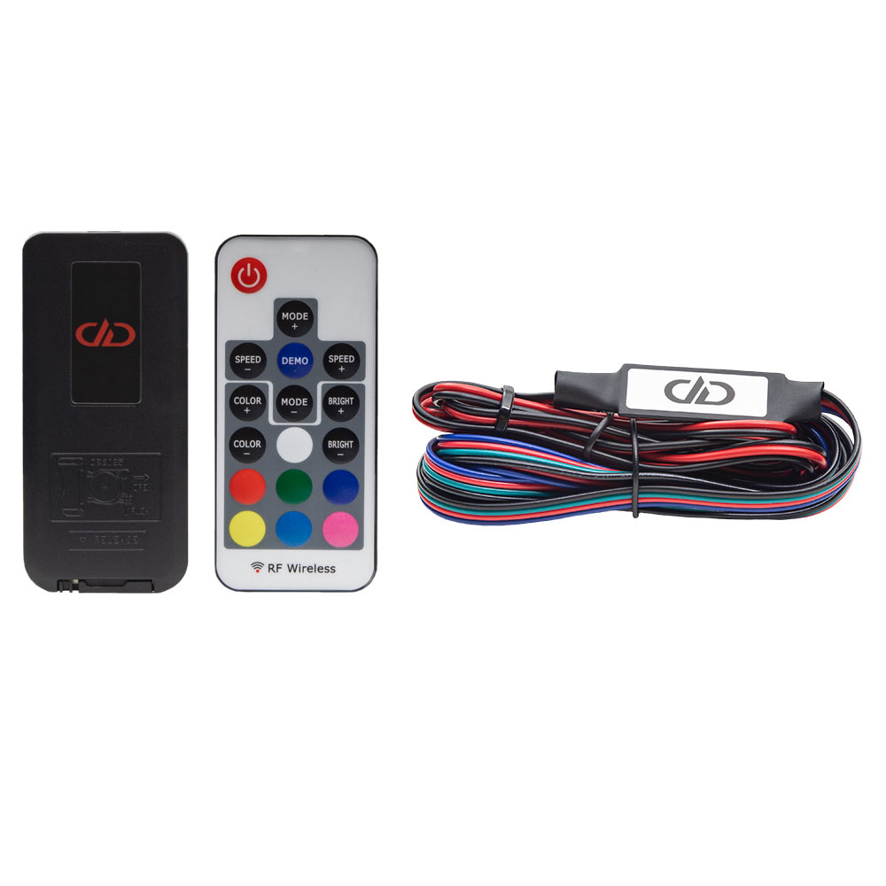 These molded rings come with a remote control and installation wiring. The only wired connections needed are +12v and Ground, and the Remote can control any number of light rings simultaneously.